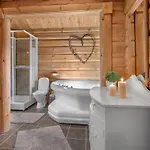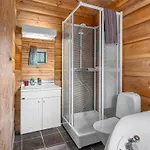 Holiday Home Annebu By Interhome présente une salle de bains avec une toilette séparée, une douche et une machine à laver.